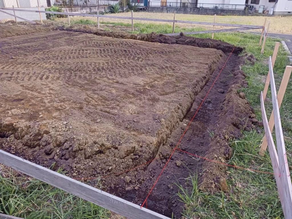 基礎をつくるために地面を所定の深さまで掘る作業。