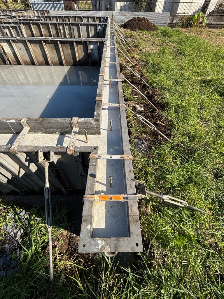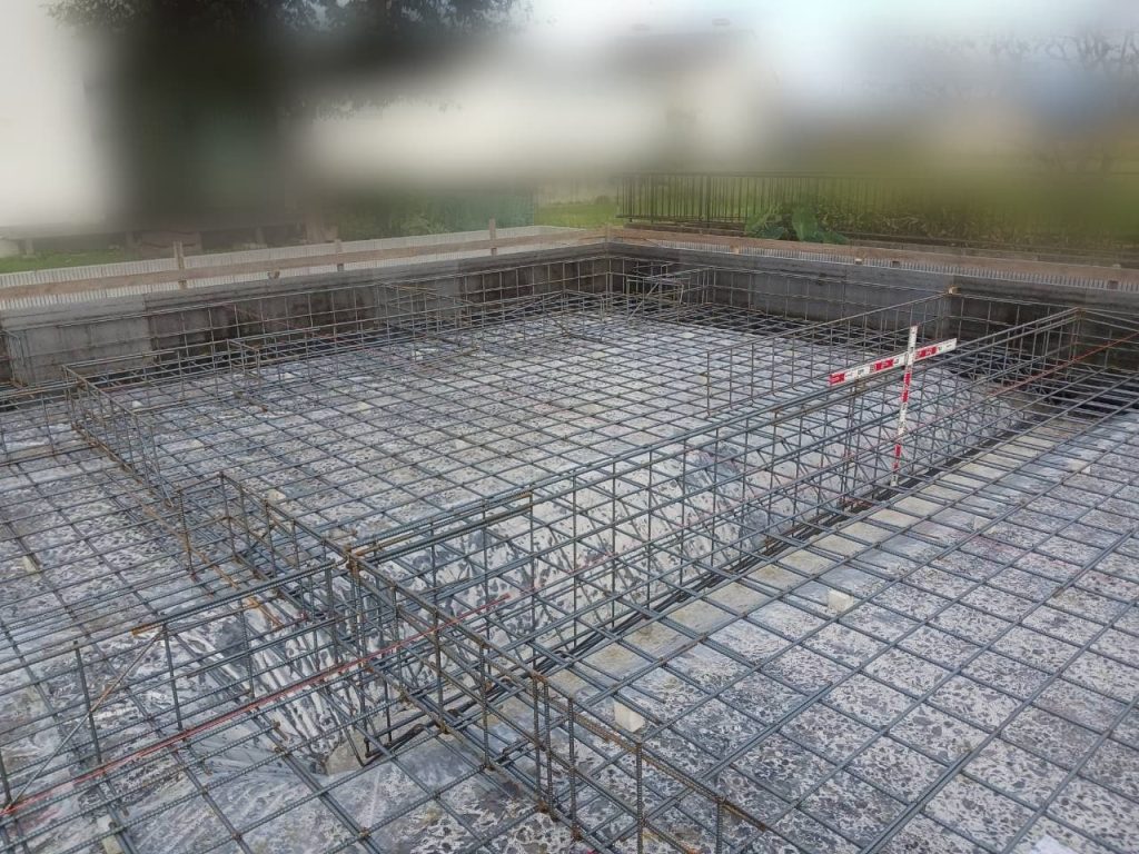 ベースの上に型枠を組み、立ち上がり部分(壁のような部分)にコンクリートを流す工程。