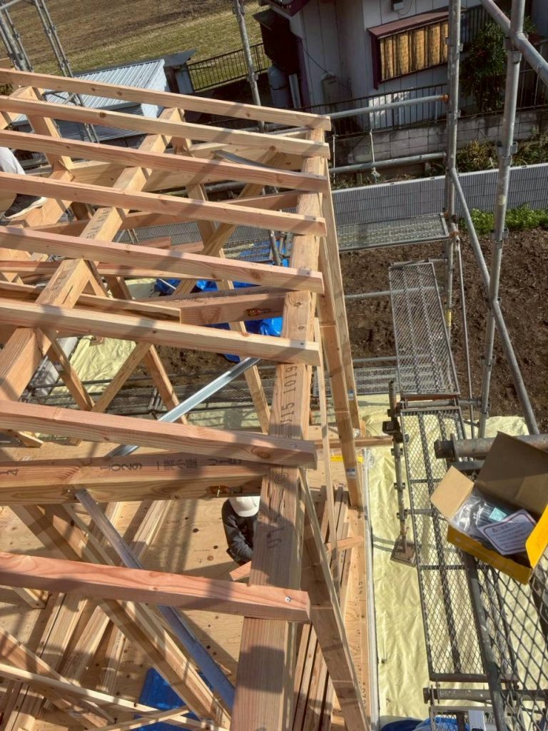 この垂木は、屋根の形をつくり、上に張る板を支える大事な部分となっています!