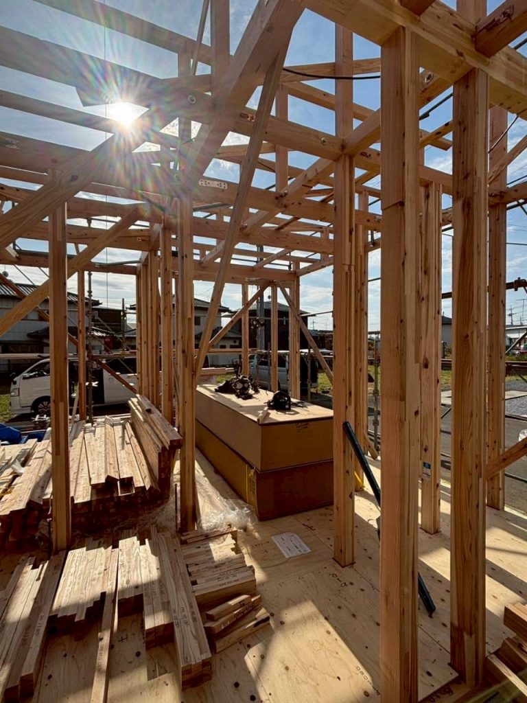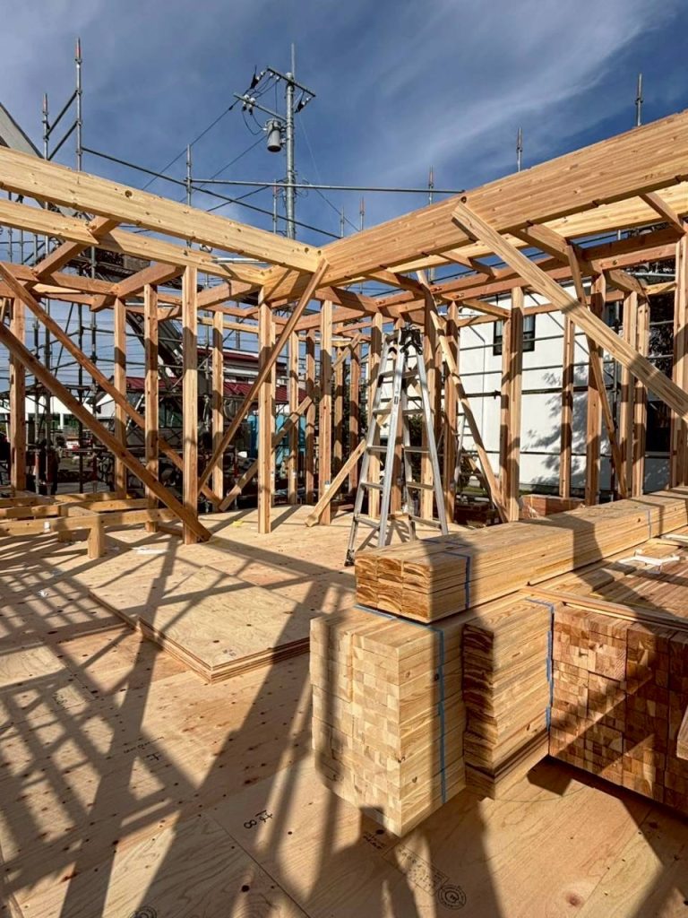 この木の骨組みが、これから家族を守り、長い年月を支えていく大切な構造部分になります。