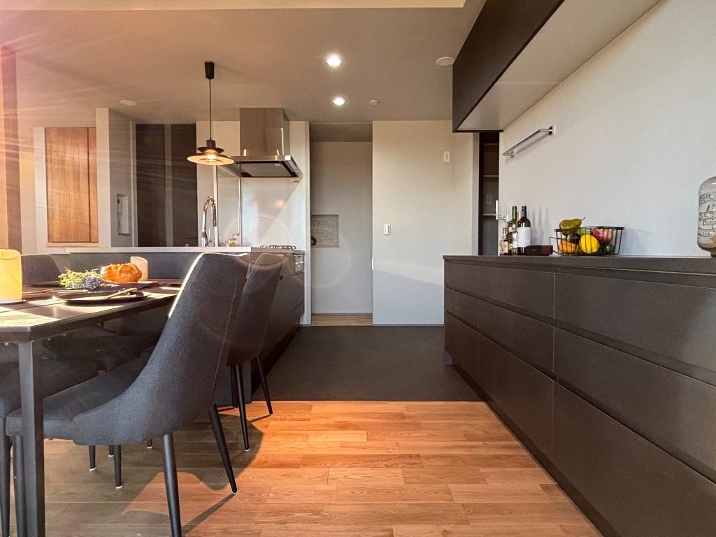 大きな窓から届く自然光がキッチンやダイニングにも心地よく差し込み、