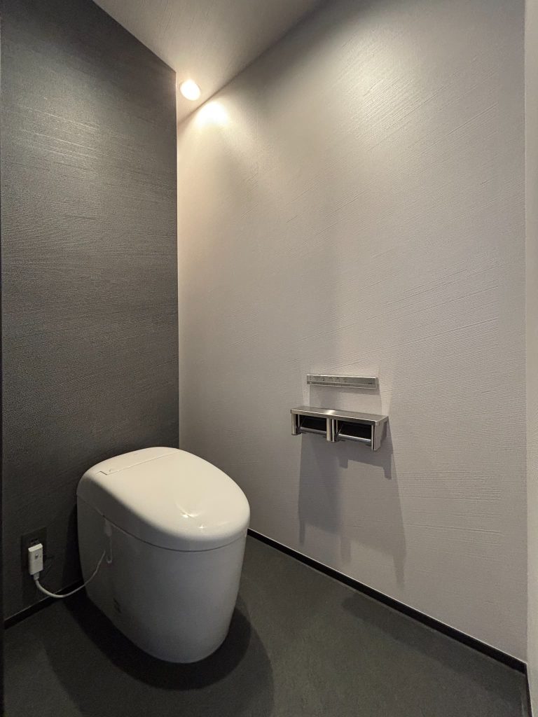 濃淡のクロスで奥行きをつけた、ホテルライクなトイレ空間🚽