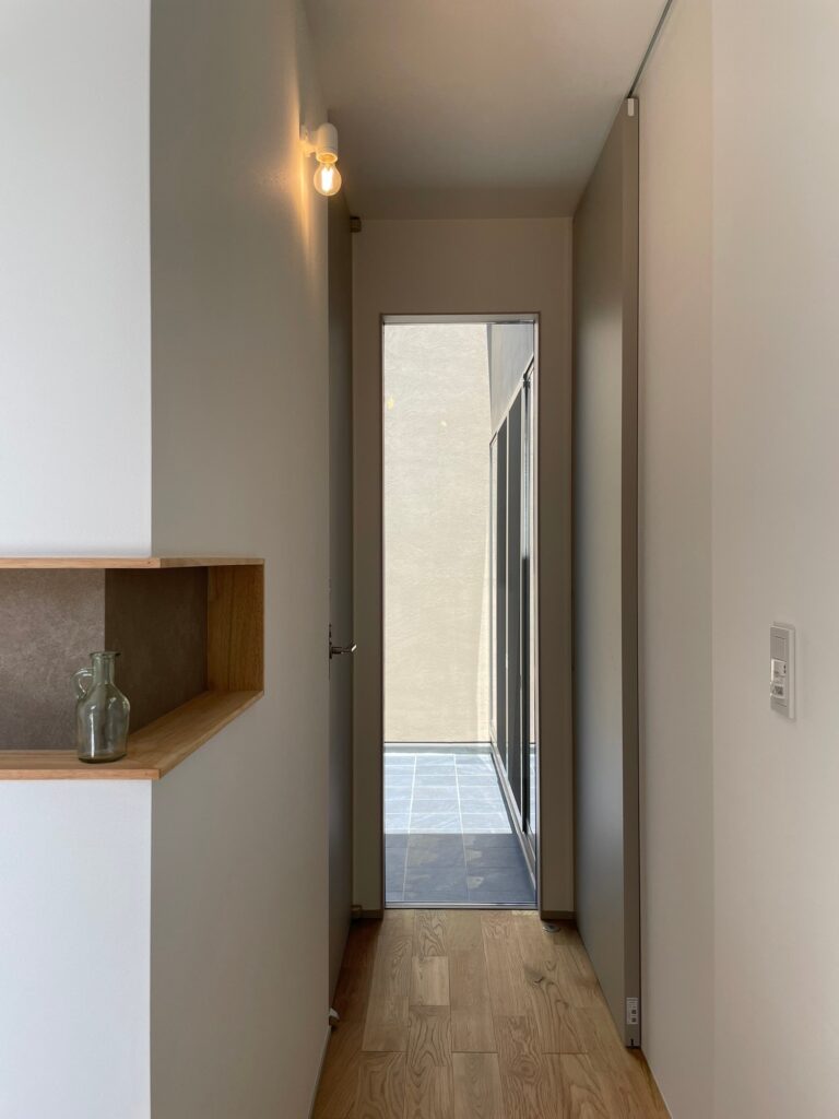 例えば、玄関からキッチンへと続く動線や廊下の動線。