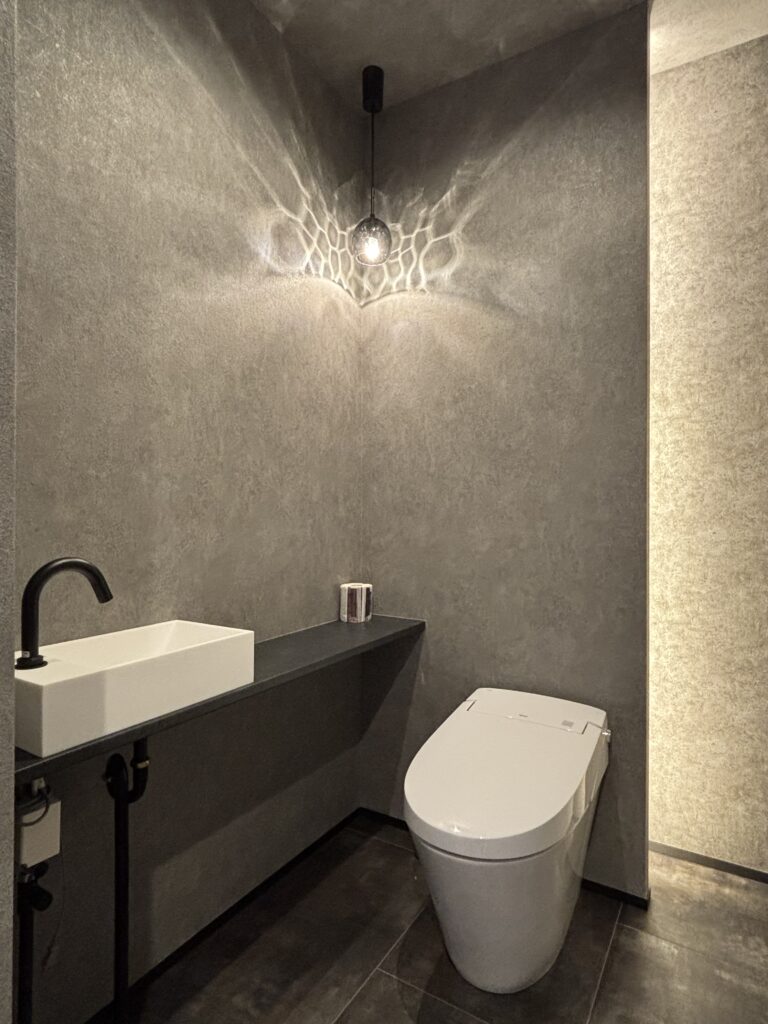 こちらはトイレ背面の隠れ収納に照明を当てた実例です。