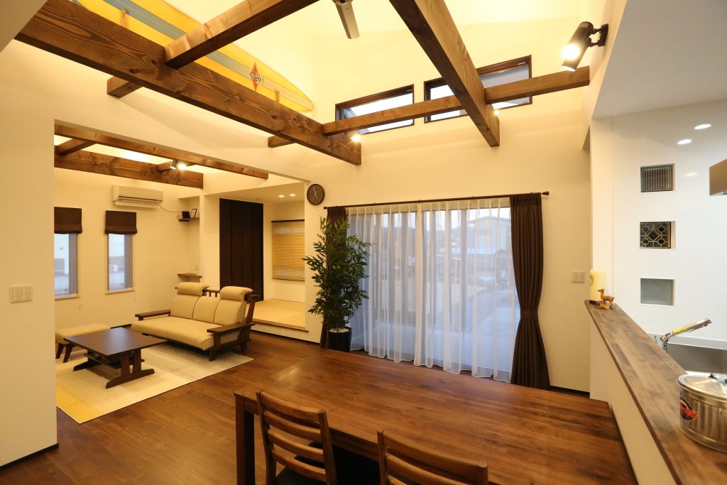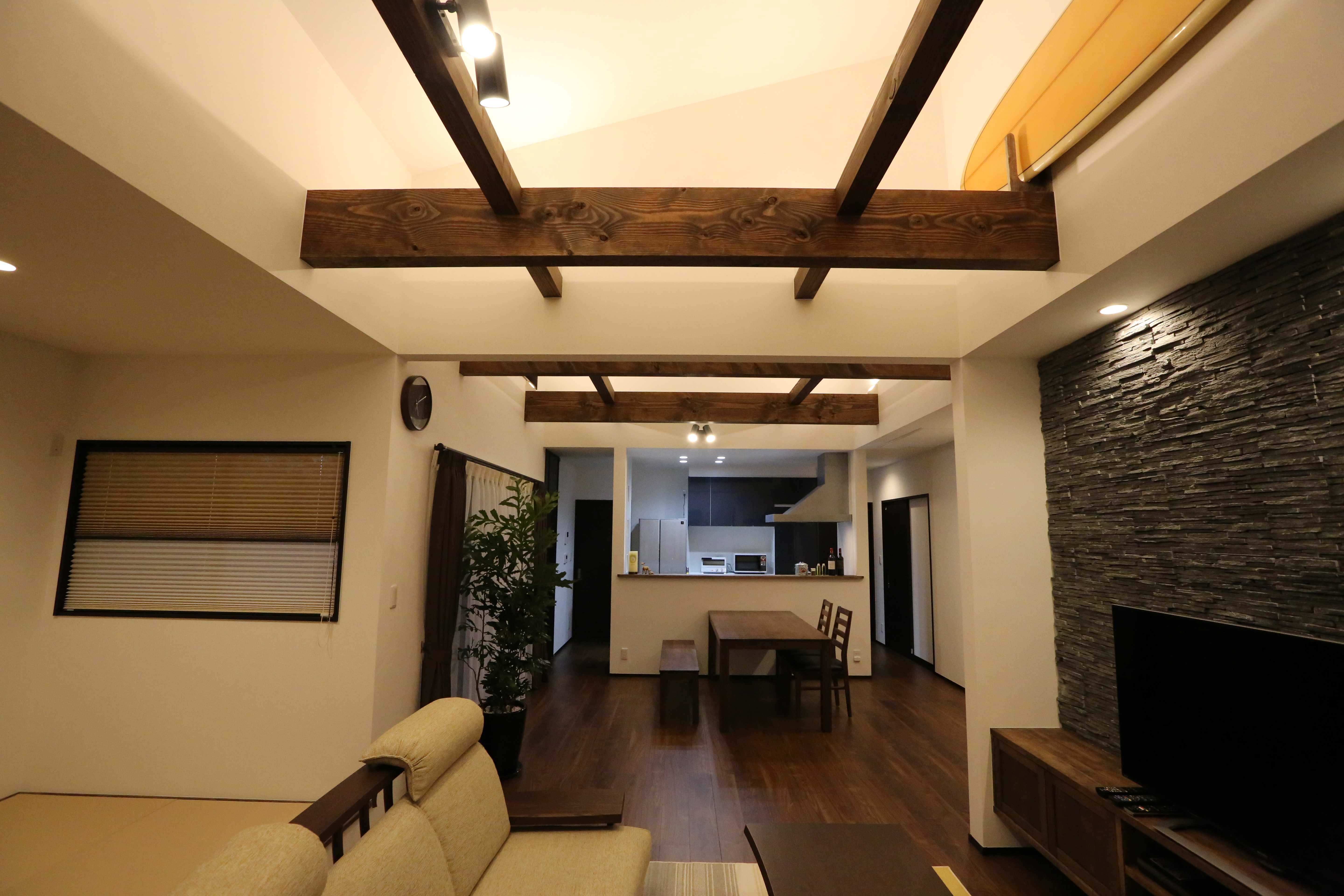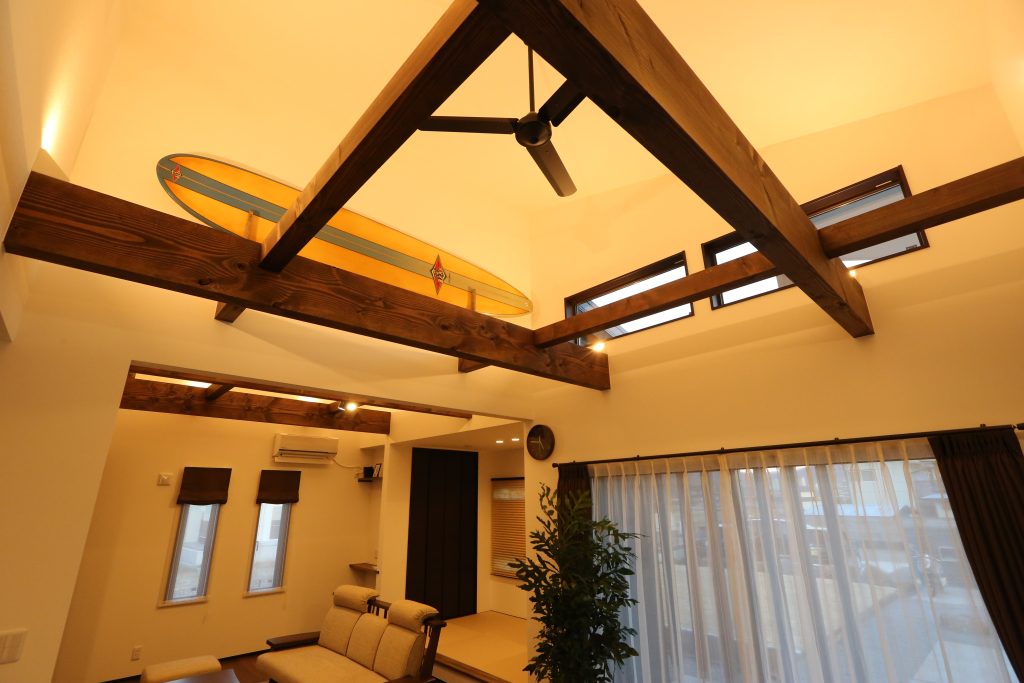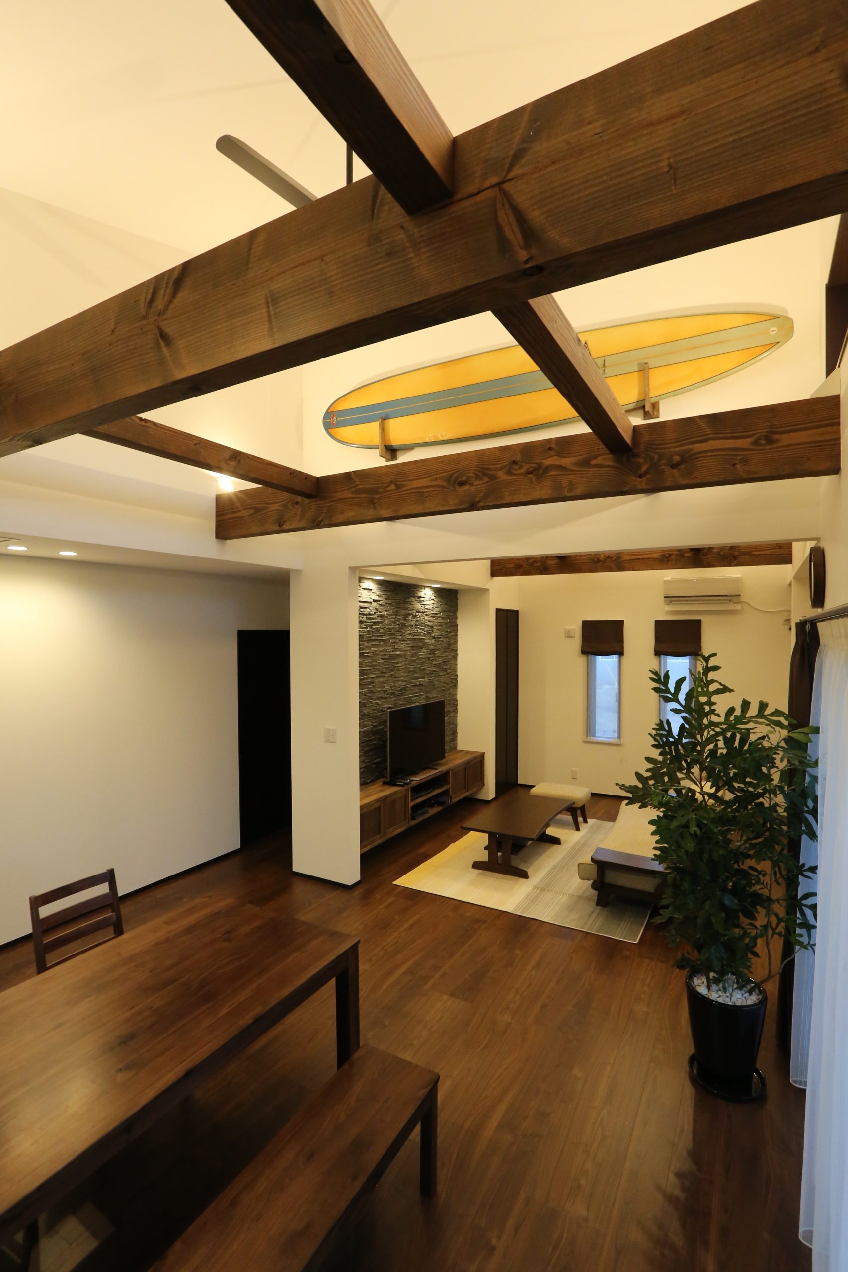 example施工実例 ゆったり暮らせる癒しの平屋和モダン ジャパニーズ 平屋 ー和モダンの良さを詰め込みましたー 吹き抜けに見せ梁を取り入れ、サーフボードをディスプレイ造作をたくさん取り入れ、機能性にも優れた癒しの和モダンハウス DATA ■ 敷地面積:―■ 延床面積:30.00坪■ 施工地域:栃木県芳賀郡芳賀町■ 家族構成:2LDK