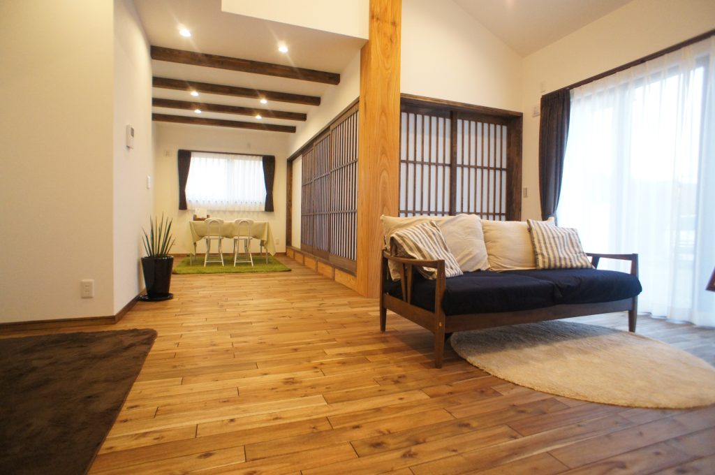 example施工実例 わわっ、和モダン。 ジャパニーズ ー平屋って本当にいいですねー 人気の平屋で和モダンテイストのお家。自然素材の落ち着いた色合いの床材や建具を選び、くつろぎのこだわりハウスになりました。 DATA ■ 敷地面積:―■ 延床面積:38.43坪■ 施工地域:茨城県筑西市■ 間取り:3LDK