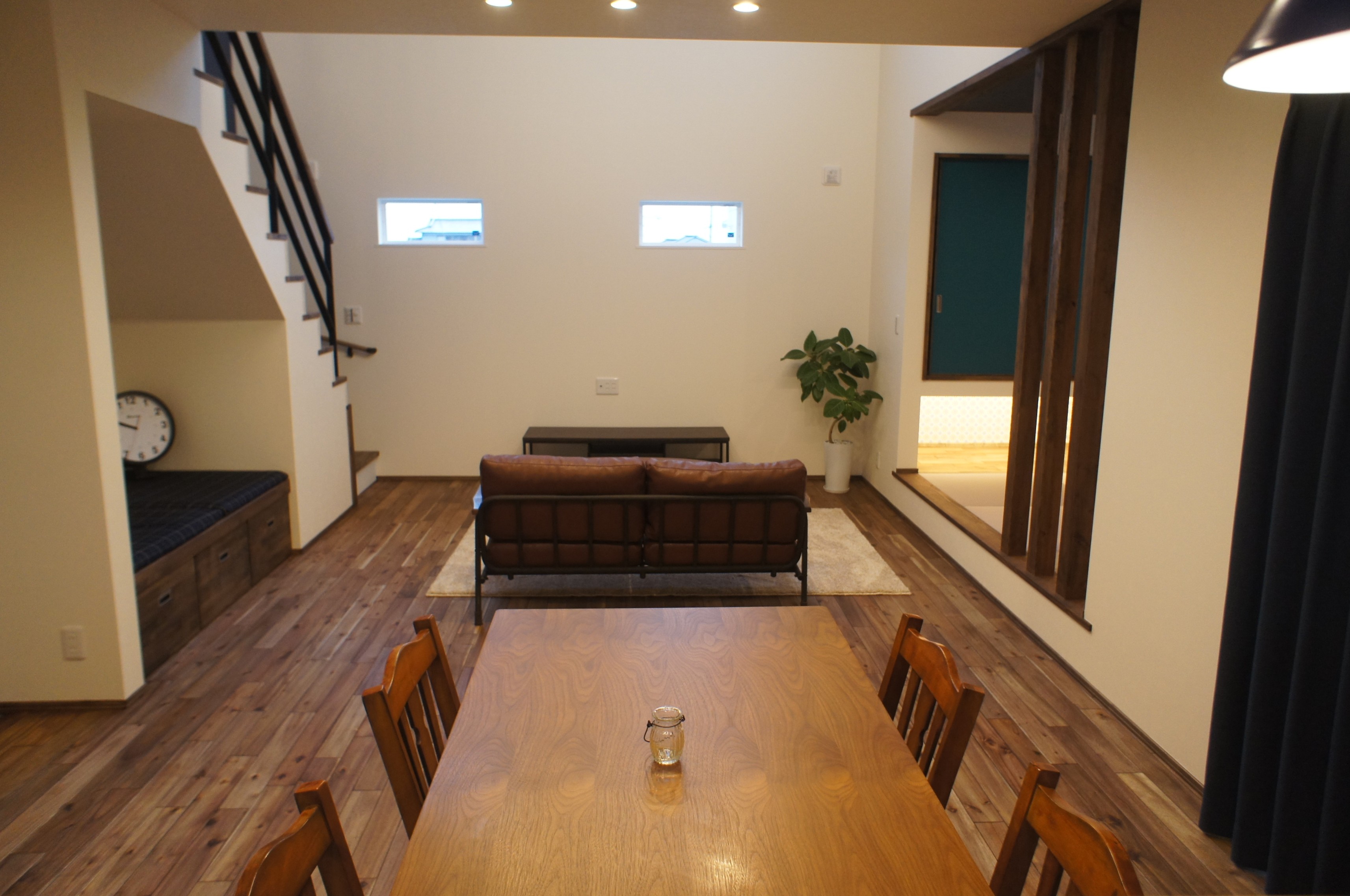 example施工実例 ヴィンテージモダンハウス モダン ー外はシンプル、中はこってりー 本棚やアルコ―ヴなどを造作し、中はこってりヴィンテージハウス熱が伝わりにくいウレタンのウッドデッキをつけてBBQやプールを楽しめる、シンプルなようで実はこだわりのお家 DATA ■ 敷地面積:―■ 延床面積:36.74坪■ 施工地域:茨城県古河市■ 家族構成:―