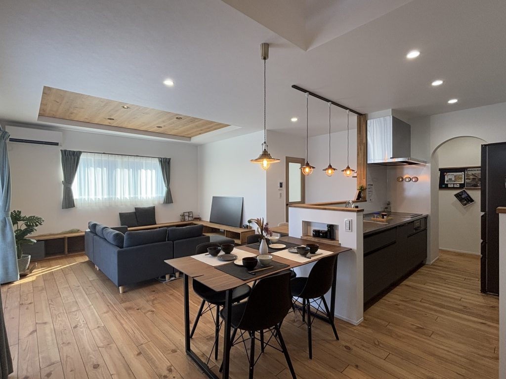 example施工実例 余地の家 モダン ー暮らしながら家族で色付けしていく住まいー 裏動線のあるお家(玄関⇀シューズクローク⇀パントリー⇀キッチン)多目的スペースとして使用できる中二階 DATA ■ 敷地面積:106.54坪■ 延床面積:38.62坪■ 施工地域:栃木県栃木市■ 家族構成:―