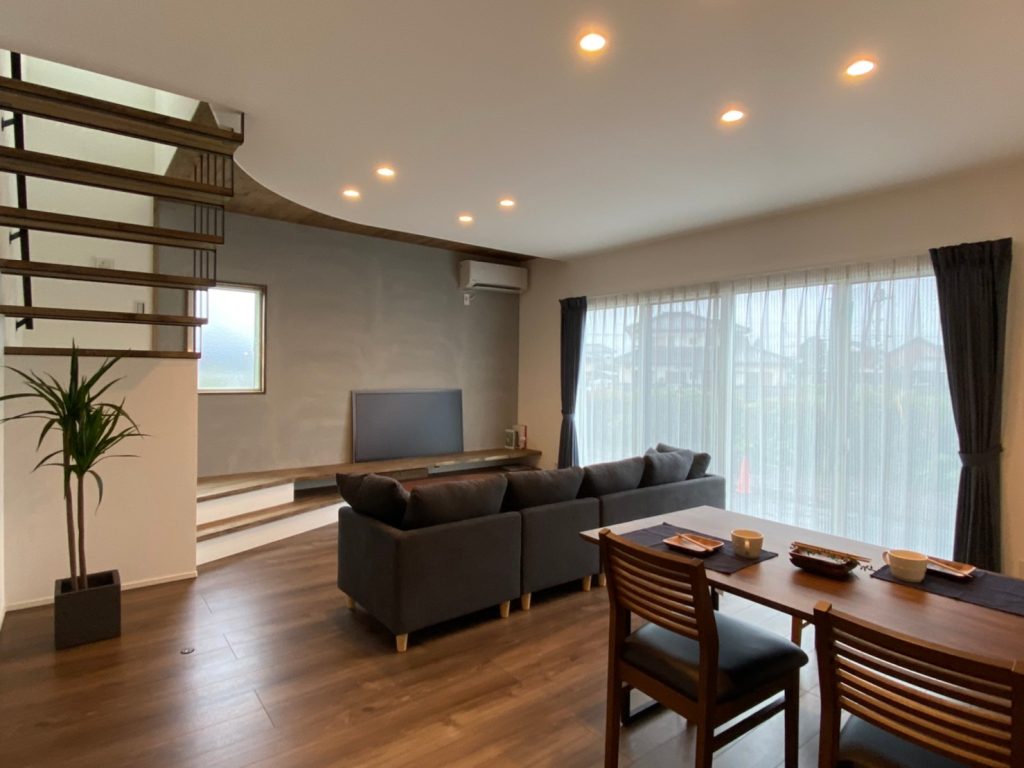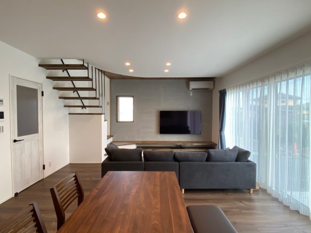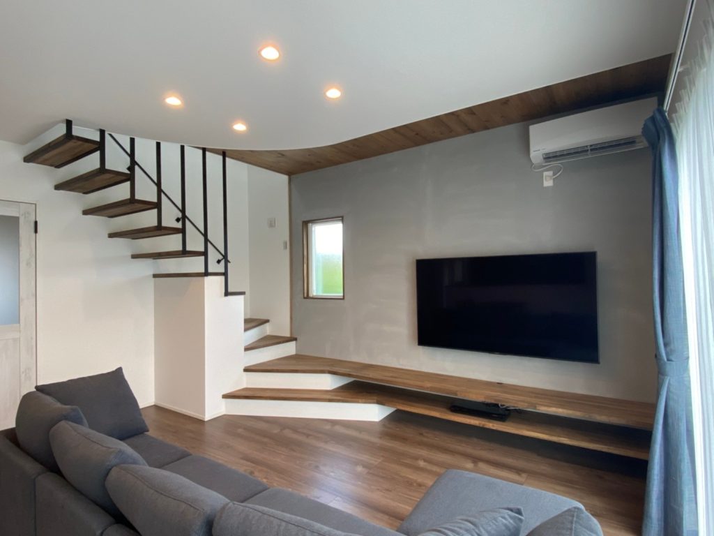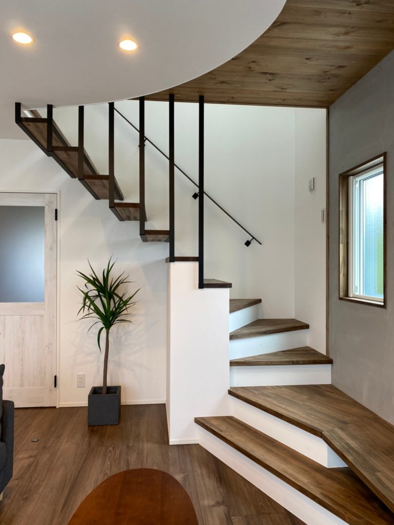 example施工実例 僕らの時代 モダン ー受け継がれる想いを込めてつくる家ー アールの天井をアクセントにしたLDKと変わった形の階段が特徴のモダンハウス受け継がれる想いを詰め込んだこだわりの家 DATA ■ 敷地面積:467.04坪■ 延床面積:33.87坪■ 施工地域:茨城県古河市■ 家族構成:―