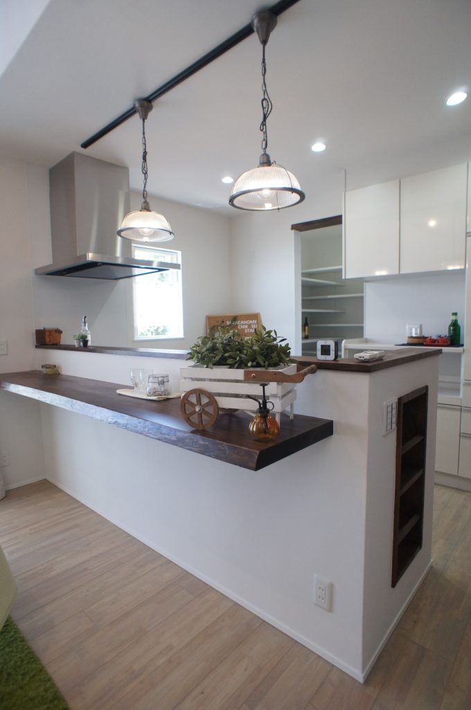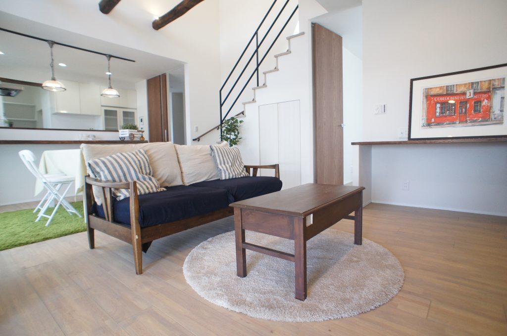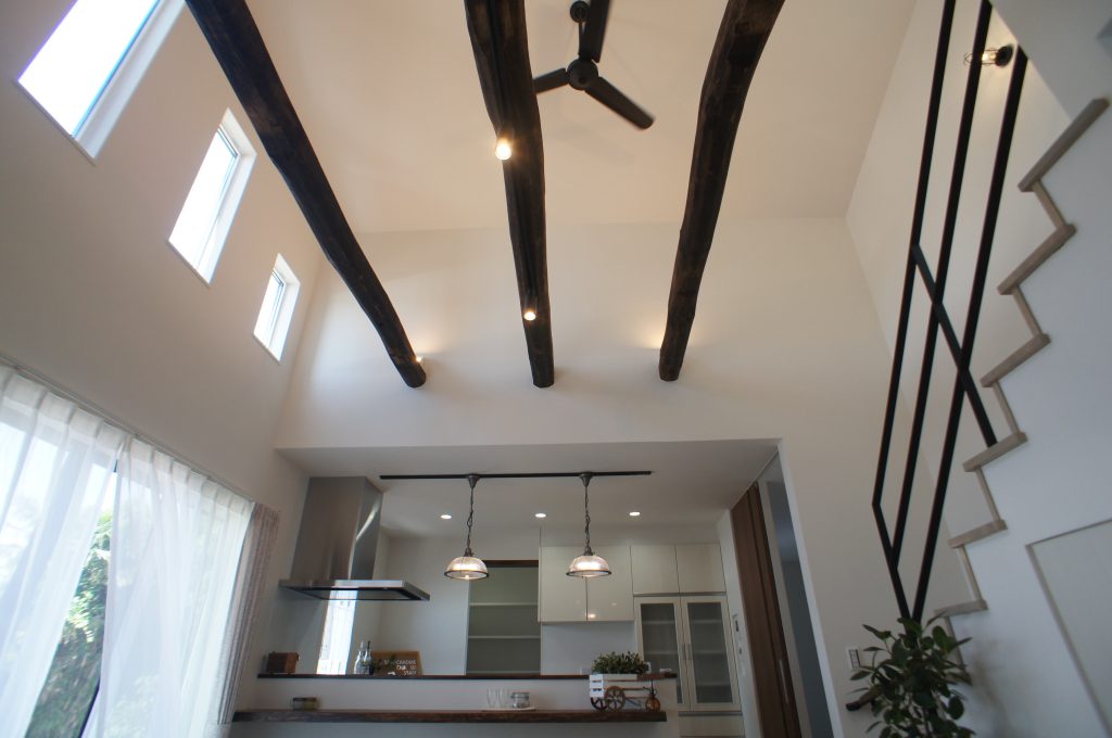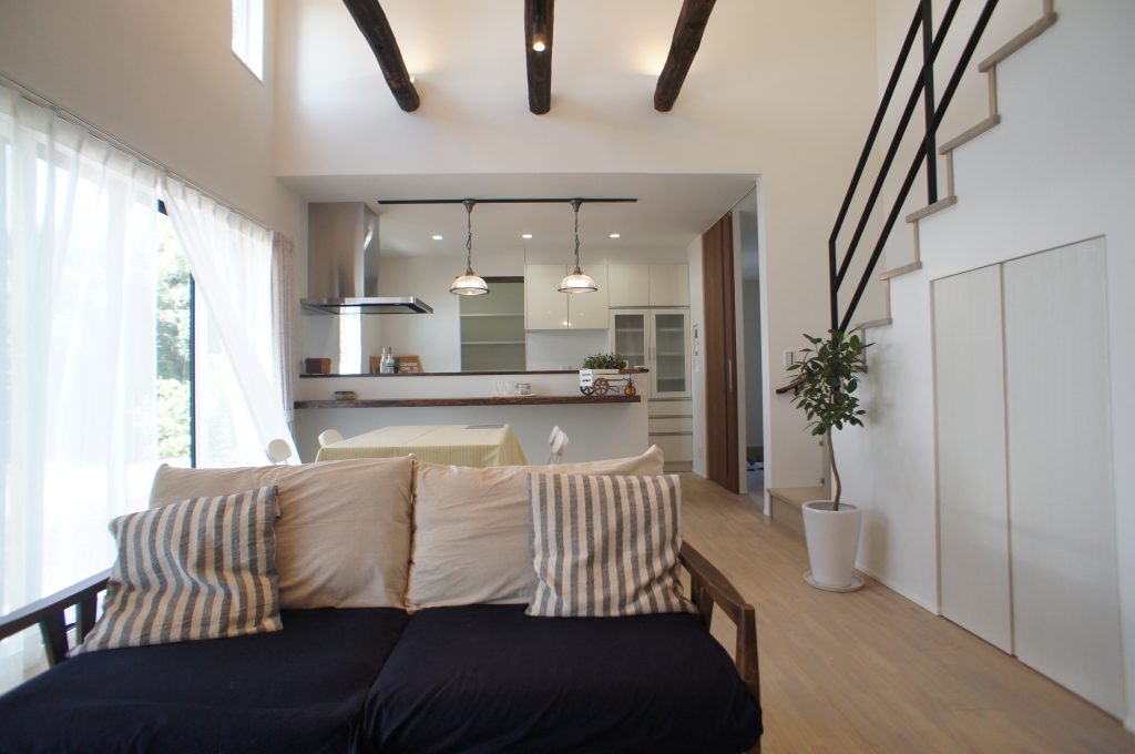 example施工実例 吹き抜けの木材がアクセント カフェ・フレンチ ーインダストリアルハウスー 開放感あふれる吹き抜けに見せ梁をアクセントに取り入れ、木・石・アイアン・自然素材塗壁など異素材がマッチしたお家 DATA ■ 敷地面積:―■ 延床面積:31.74坪■ 施工地域:茨城県筑西市■ 間取り:3LDK