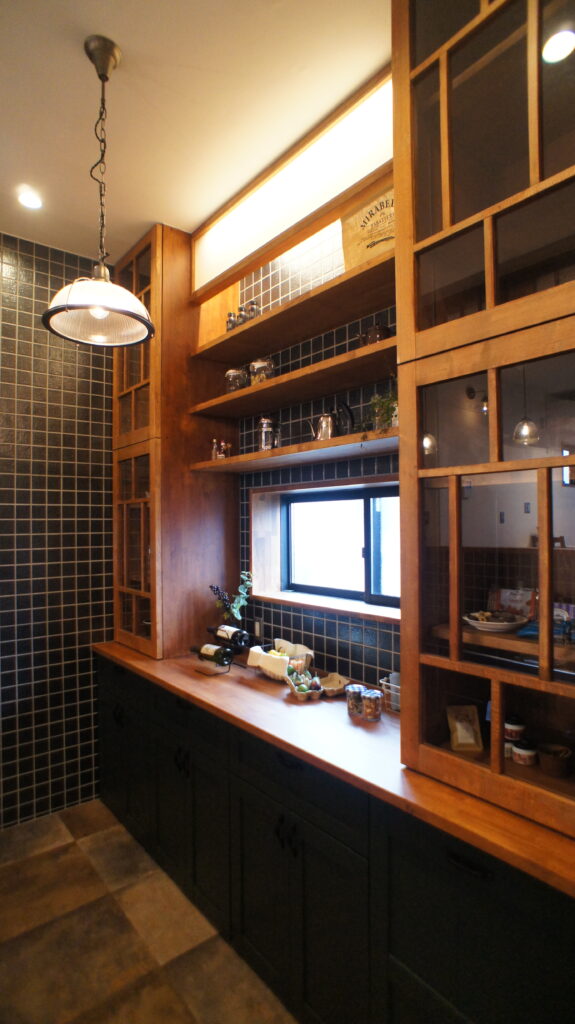 珈琲好きのご夫婦のためのアンバー色のシックなキッチンをアクセントに、