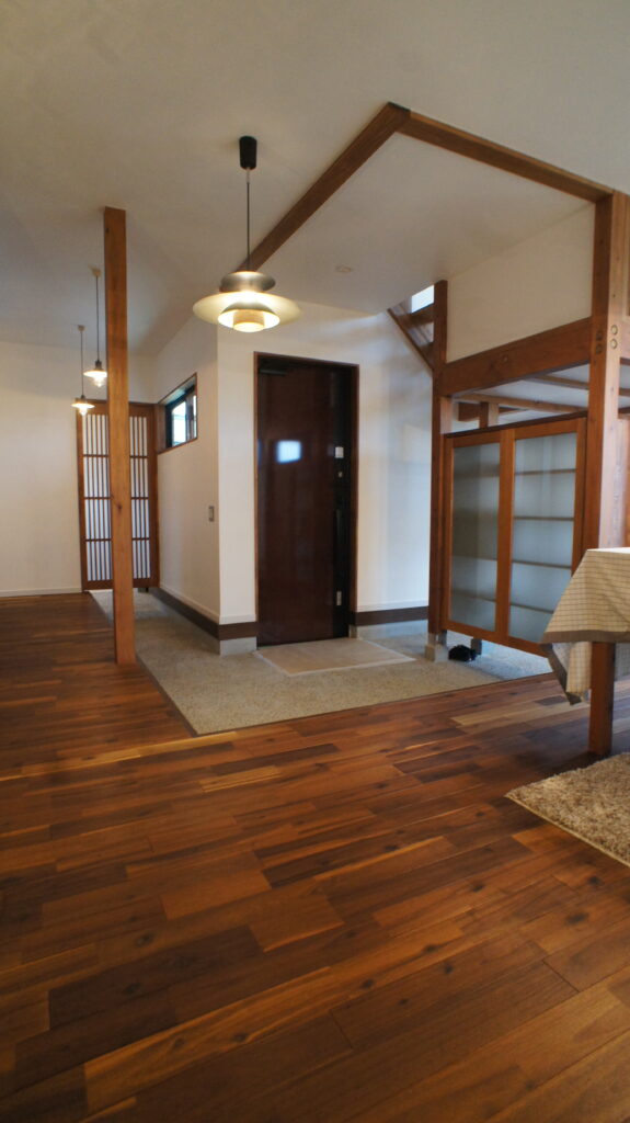 大胆にも部屋を仕切る壁を一切作らないという自由空間を実現しました。