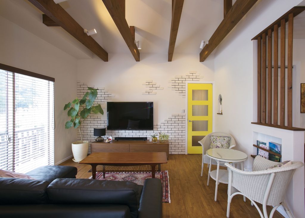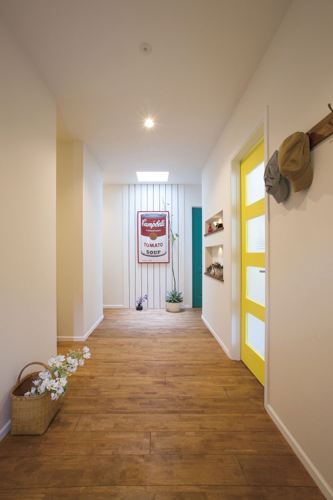 example施工実例 平屋のアメリカンなおうち サーフ・アメリカン ターコイズブルーやイエローのビビットカラーの扉が印象的な、アメリカンテイストの造作満載のお家 DATA ■ 敷地面積:―■ 延床面積:―■ 施工地域:―■ 間取り:―