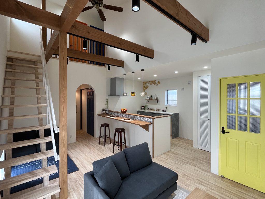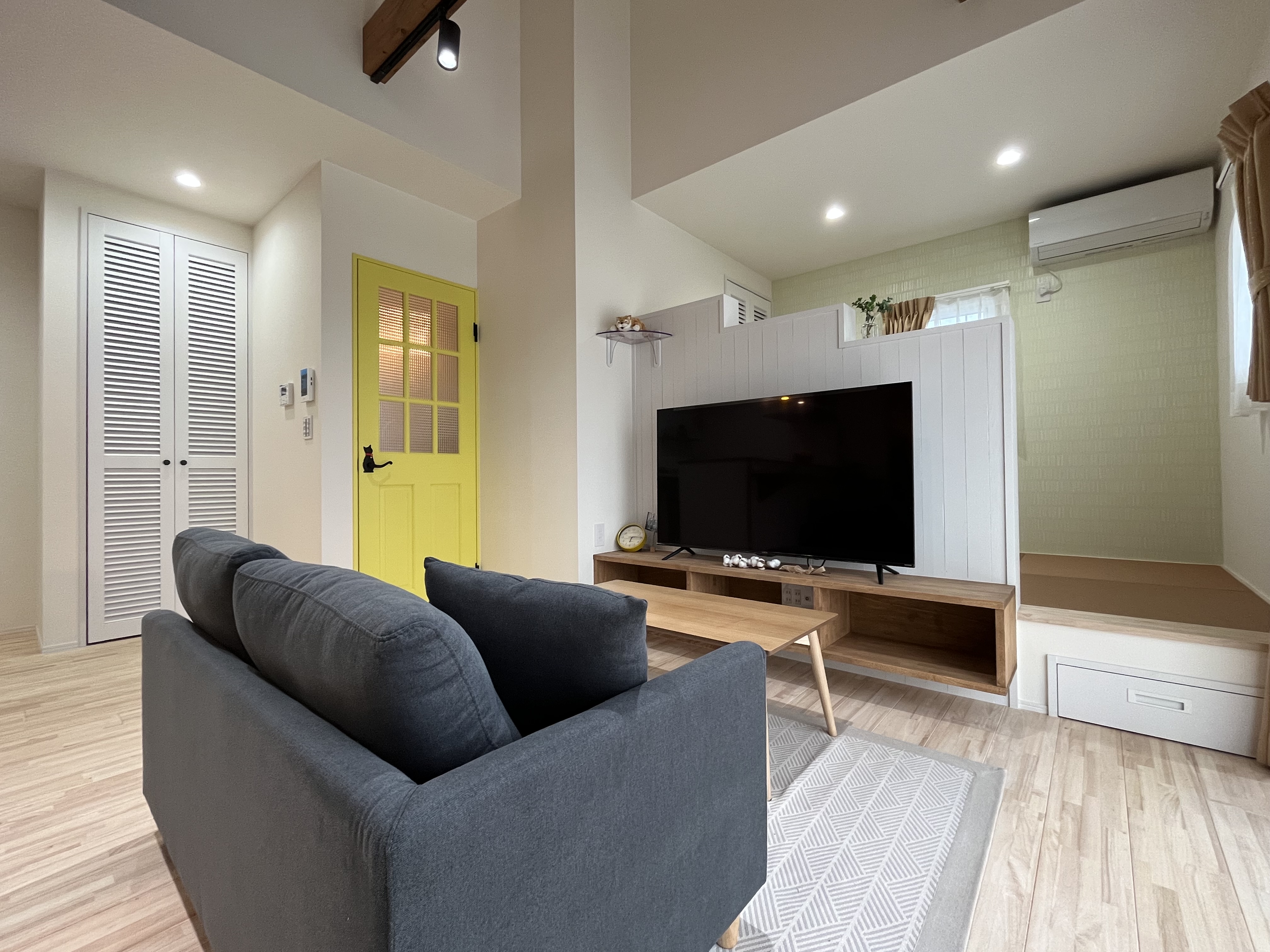 example施工実例 彩(いろ)の家 ナチュラル ー私たちらしい彩どりをした猫と暮らす家ー 木の温もりを感じるナチュラルハウスの家随所に猫ちゃん要素を盛り込み、アクセントにカラフルなドアや可愛らしいクロスを使用したお施主様らしさを詰め込んだ住まい DATA ■ 敷地面積:145.57坪■ 延床面積:31.62坪■ 施工地域:栃木県下都賀郡野木町■ 家族構成:―