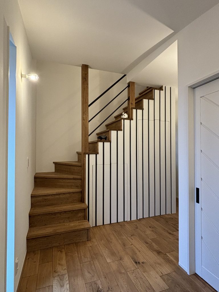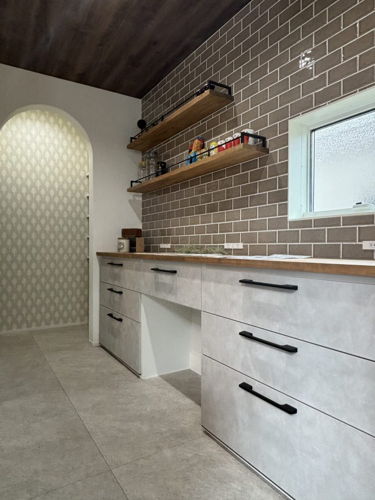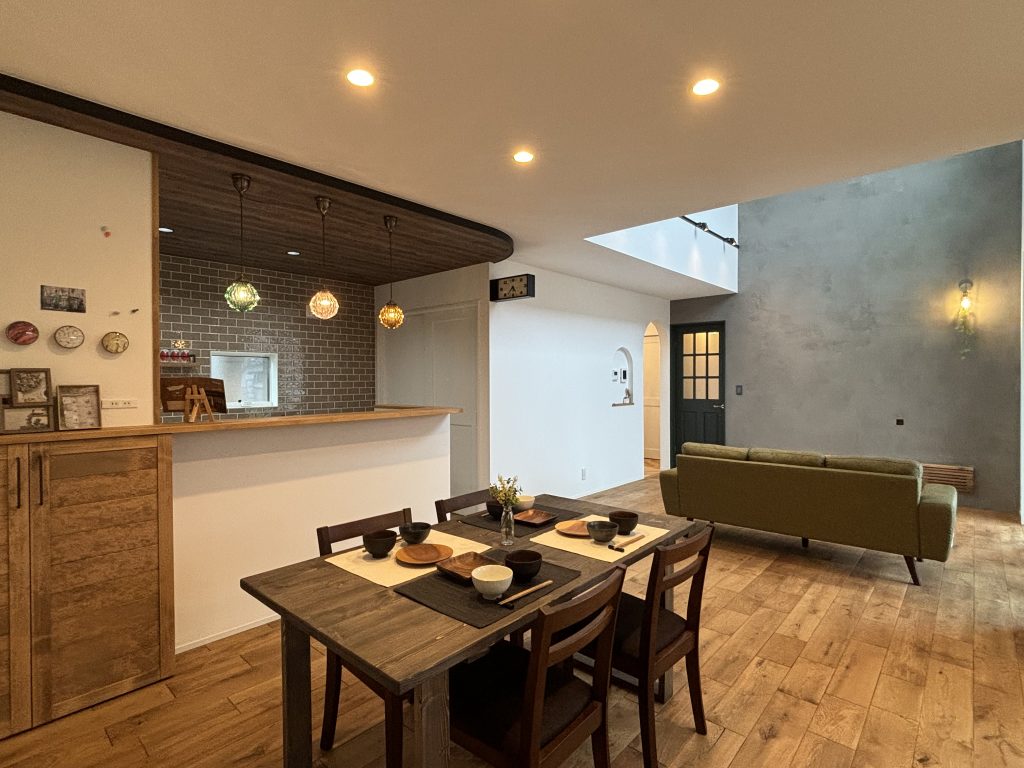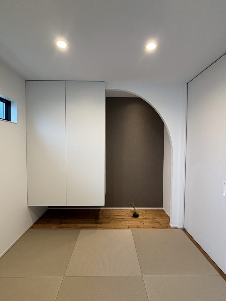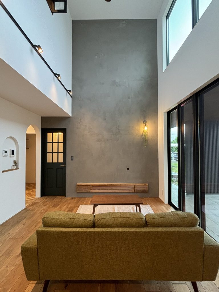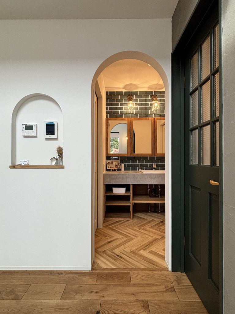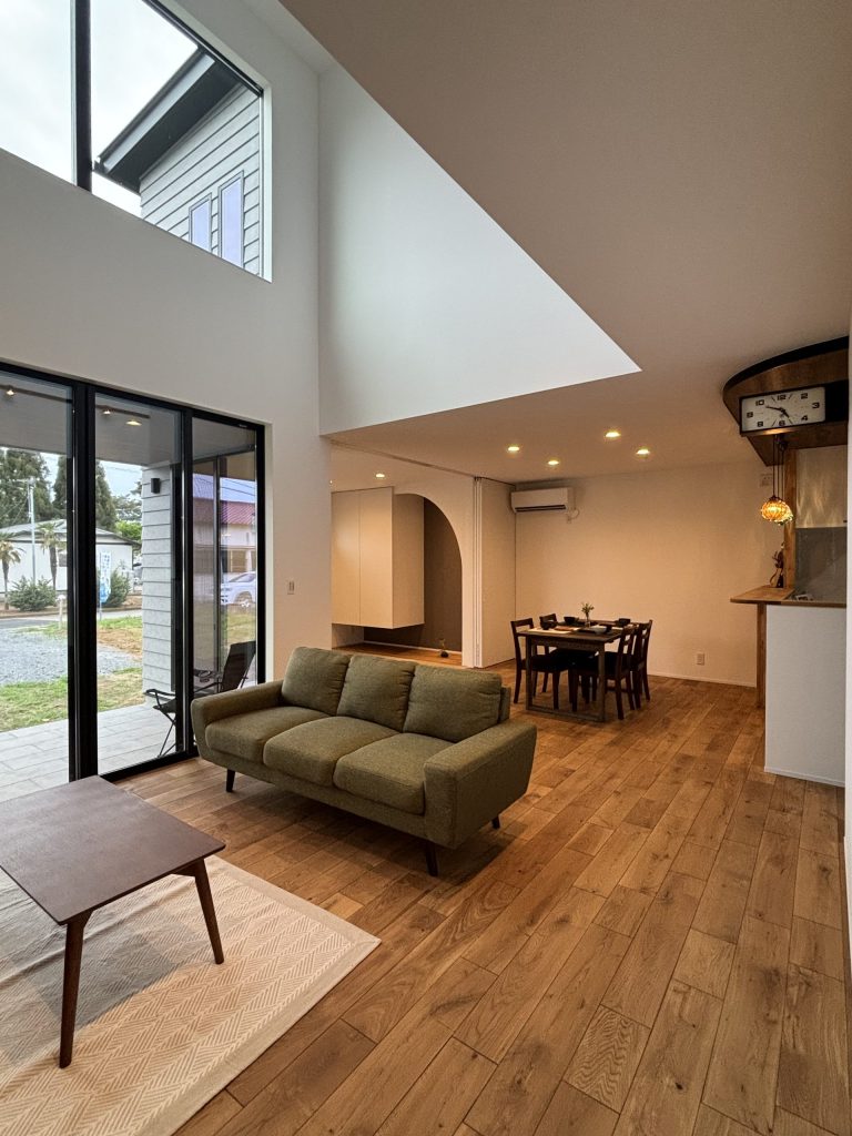 example施工実例 心弛びの家 モダン ー開放感のあるくつろぎの家ー タイムパフォーマンスの良い動線で家事時短!アールを随所に使用した柔らかい印象の室内 DATA ■ 敷地面積:112.25坪■ 延床面積:41.36坪■ 施工地域:茨城県常総市■ 家族構成:―