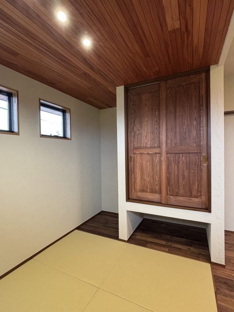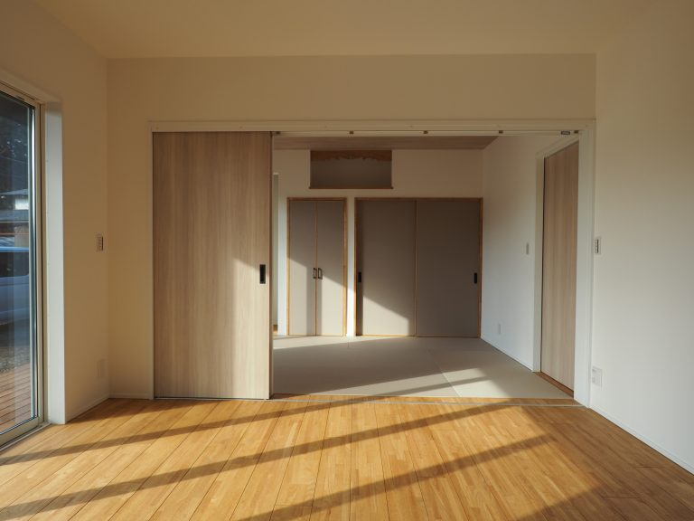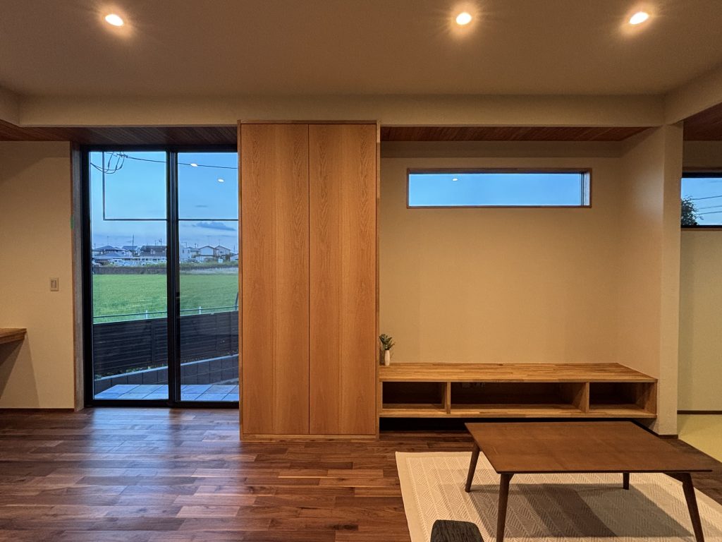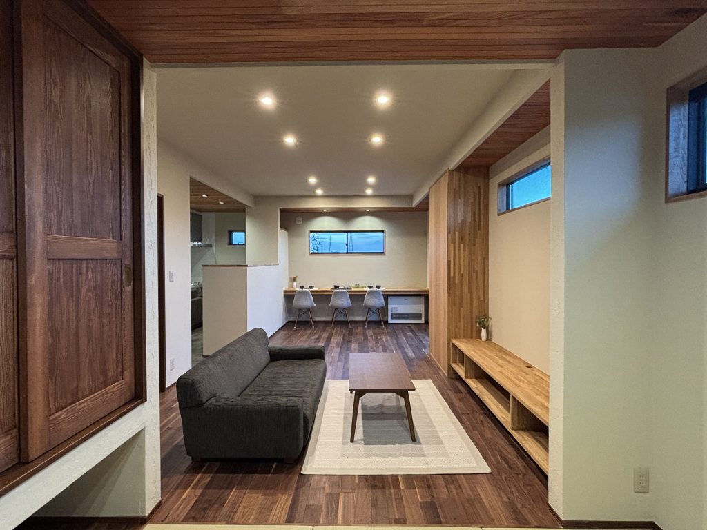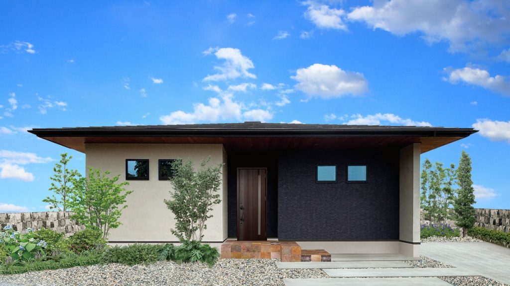 example施工実例 方形の家 モダン 平屋 ー老後の暮らし方ー 軒が深く、正方形の方形が美しい屋根オール自然素材&ゆとりを大事にしたプランニング DATA ■ 敷地面積:88.68坪■ 延床面積:23.02坪■ 施工地域:栃木県下都賀郡野木町■ 家族構成:―