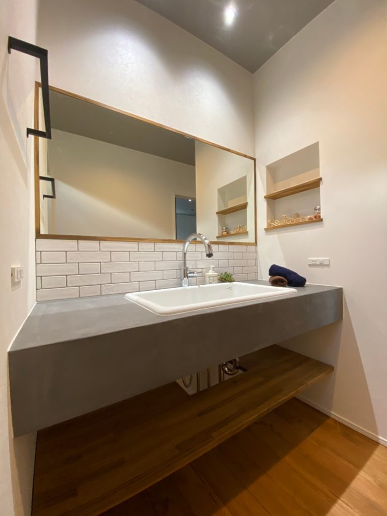example施工実例 未完成~DIYで理想のマイホーム~ サーフ・アメリカン 平屋 ー住んでからが本当の「はじまり」。ー DATA ■ 敷地面積:132.55坪■ 延床面積:29.00坪■ 施工地域:茨城県古河市■ 間取り:3LDK