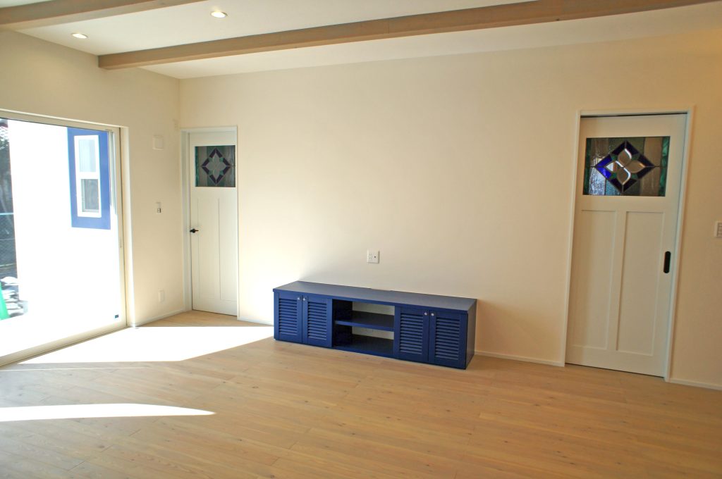 example施工実例 海を感じる家 サーフ・アメリカン 平屋 ーサントリーニ島からの潮風ー 真っ白な外壁とロイヤルブルーの建具が、サントリーニ島の海を感じさせる素敵なお家。ステンドグラスをふんだんに使用し、お施主様の「好き」をたくさん取り入れたオーダーハウスです。 DATA ■ 敷地面積:81.41坪■ 延床面積:31.87坪■ 施工地域:茨城県筑西市■ 間取り:2LDK SONY DSC SONY DSC