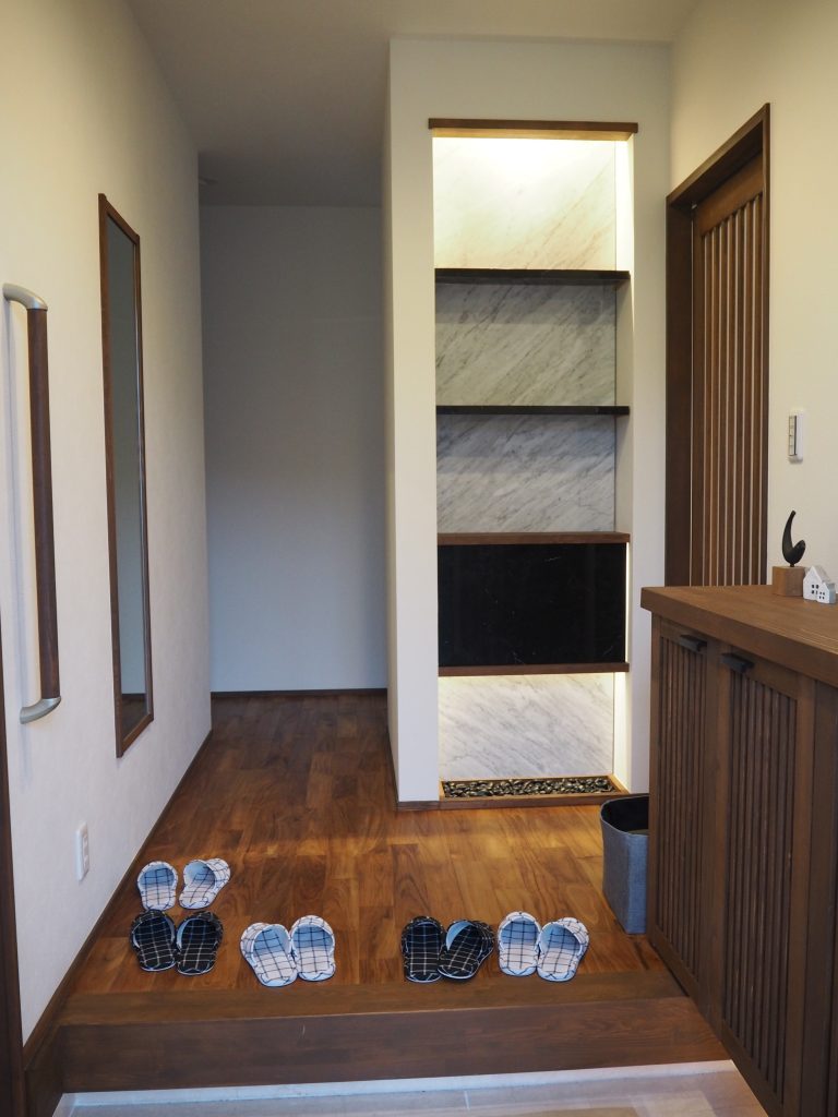 example施工実例 石、いし、イシ、盛り上がれー! ジャパニーズ ー天然石を贅沢に使用した和モダンハウスー 竹や大理石を贅沢に使用し、自然素材溢れる和の空間がとても魅力的な住宅旅館のような雰囲気のお洒落な和モダンハウスです。 DATA ■ 敷地面積:―■ 延床面積:38.00坪■ 施工地域:茨城県桜川市■ 家族構成:5LDK