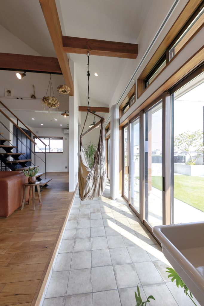 example施工実例 躍如のModern カフェスタイル ー前衛的スタイルで自分らしく過ごせる住まいー たっぷり陽が入るインナーテラスに、造作たっぷりでわんちゃんと楽しく暮らせるアートでお洒落なカフェハウス DATA ■ 敷地面積:81.23坪■ 延床面積:36.12坪■ 施工地域:栃木県下都賀郡野木町■ 家族構成:―