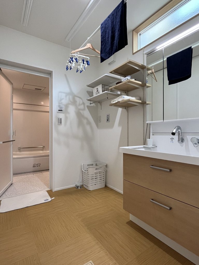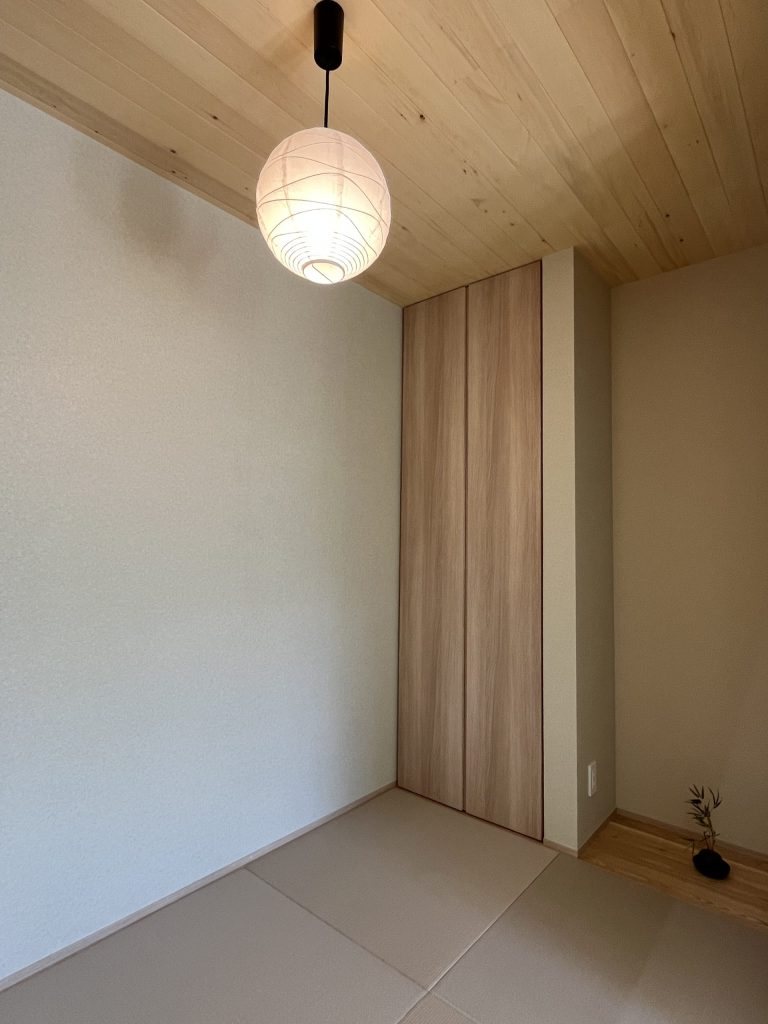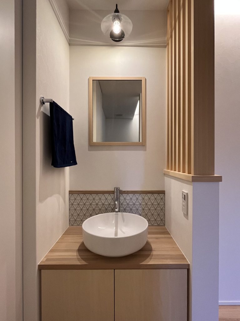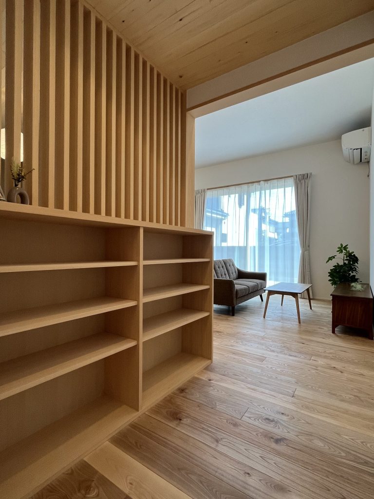 example施工実例 輪の家 ジャパンディ 平屋 ー丸ニッチのあるナチュラル和モダンな平屋ー 和の柔らかさを織り交ぜた平屋高級感漂う総タイル貼りの外壁、間接照明をふんだんに使用した柔らかい光の演出 DATA ■ 敷地面積:93.69坪■ 延床面積:29.99坪■ 施工地域:茨城県結城市■ 家族構成:―