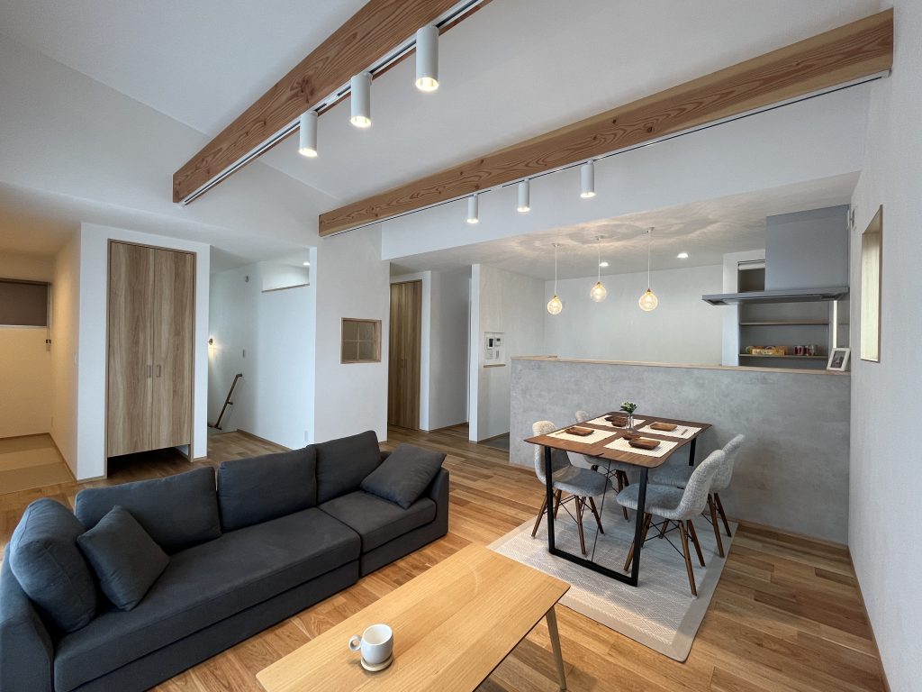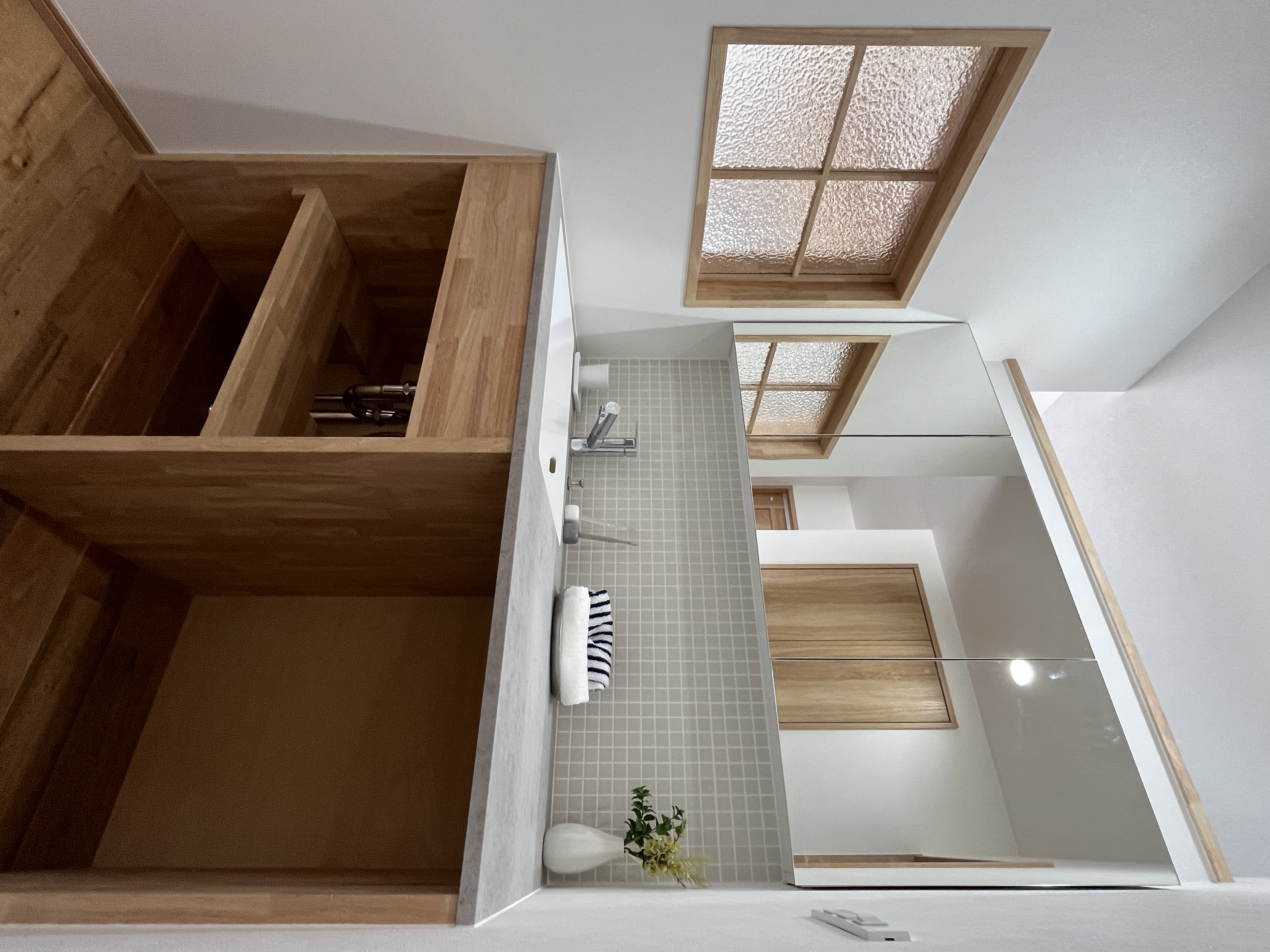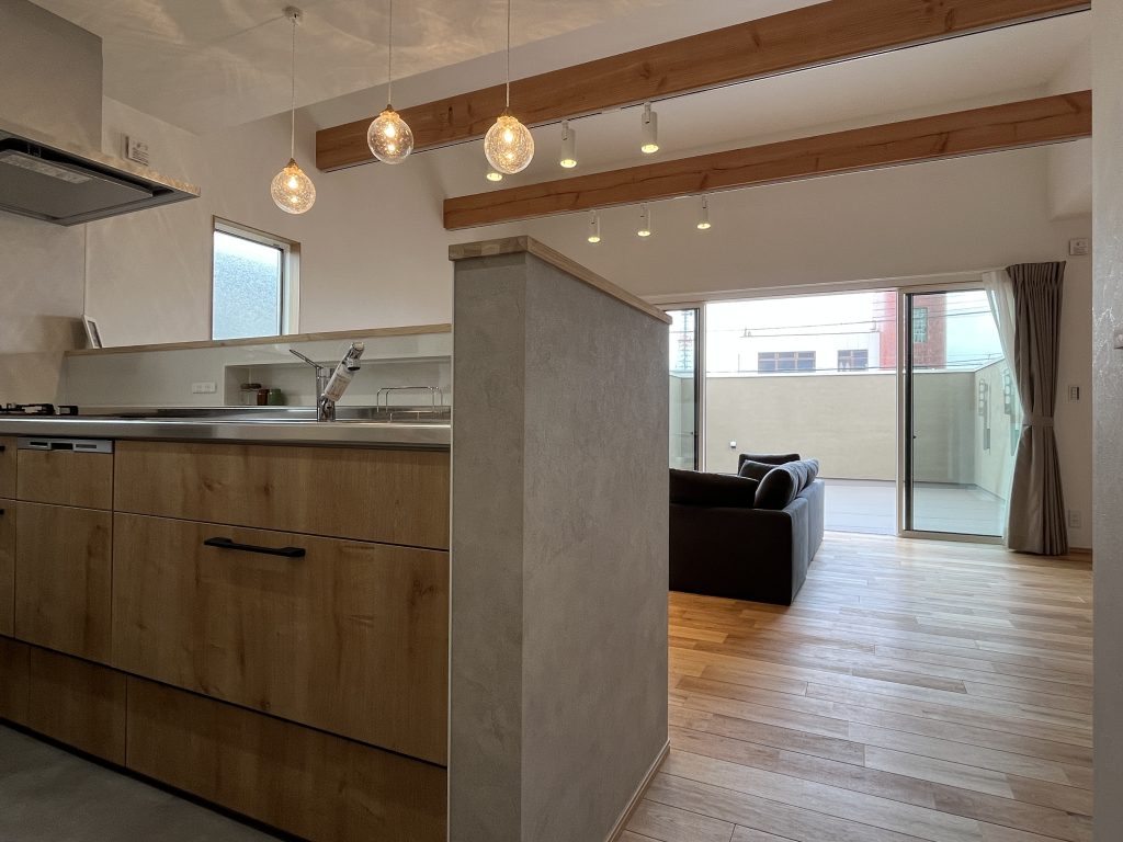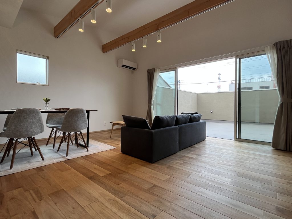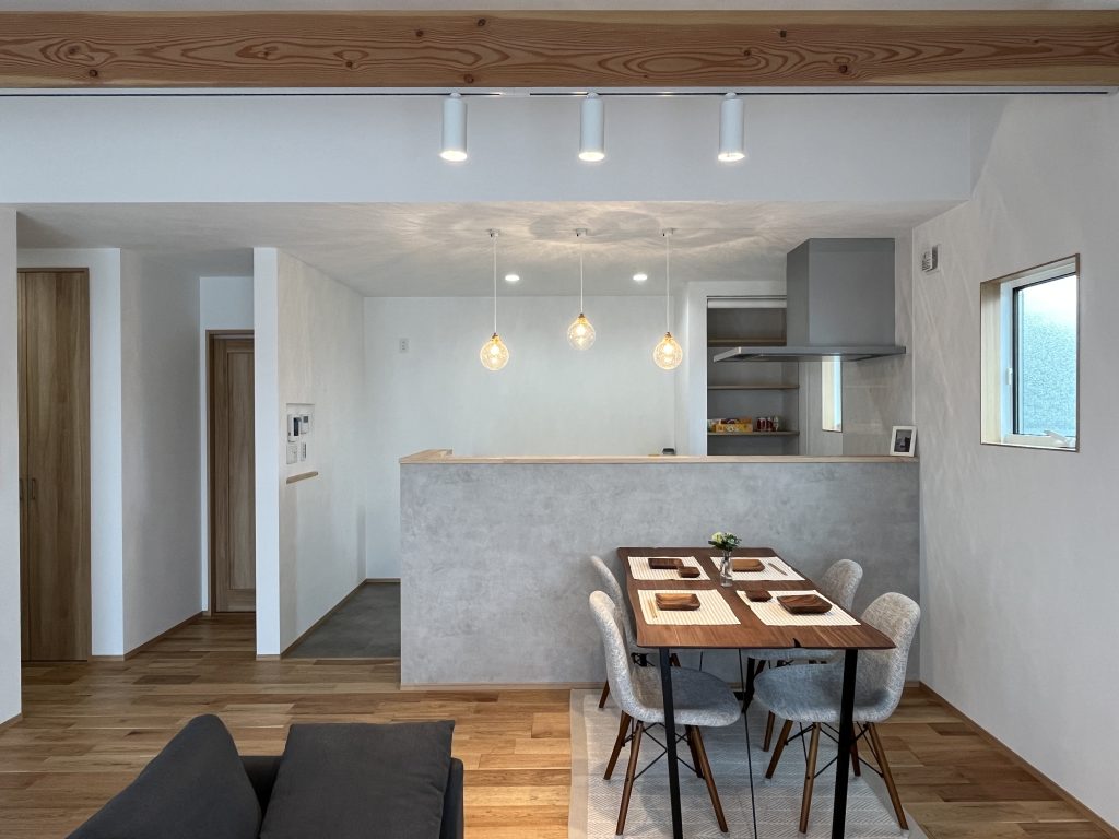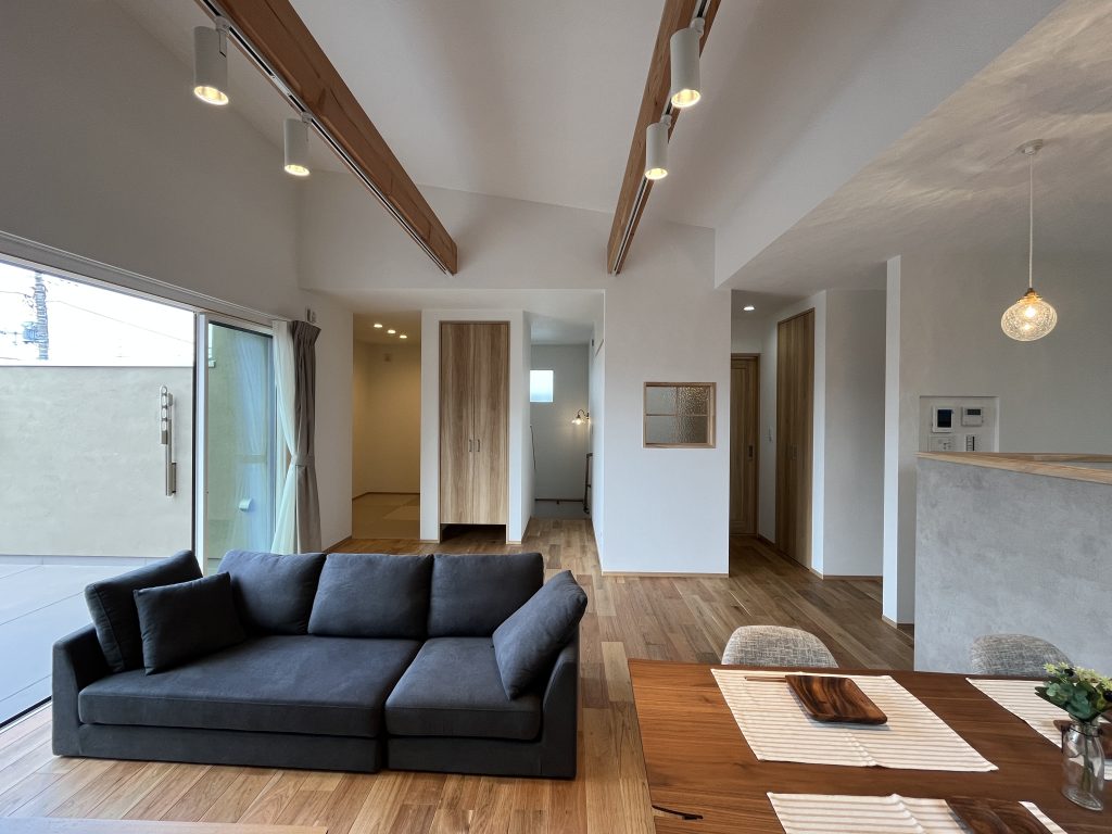 example施工実例 青空の家 ナチュラル 店舗併用住宅 ールーフバルコニーと理容室のある住まいー 2Fリビングでルーフバルコニーのあるお家店舗と住宅間の行き来がしやすく、ご夫婦それぞれの仕事スペースを確保 DATA ■ 敷地面積:113.25坪■ 延床面積:41.62坪■ 施工地域:茨城県古河市■ 家族構成:― <店舗> <住居>