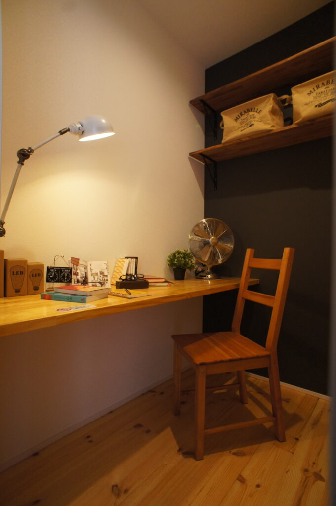 example施工実例 4B HOUSE~鉛筆じゃないよ!!~ カフェ・フレンチ 平屋 ー黒く(black) 華麗で(brilliant) 大胆な(bold) 箱(box)ー スタイリッシュな外観には広々としたウッドデッキ。カフェカウンターのようなキッチンやチョークが使える壁紙を施した書斎が自慢の4Bハウスです。 DATA ■ 敷地面積:―■ 延床面積:―■ 施工地域:―■ 間取り:4LDK