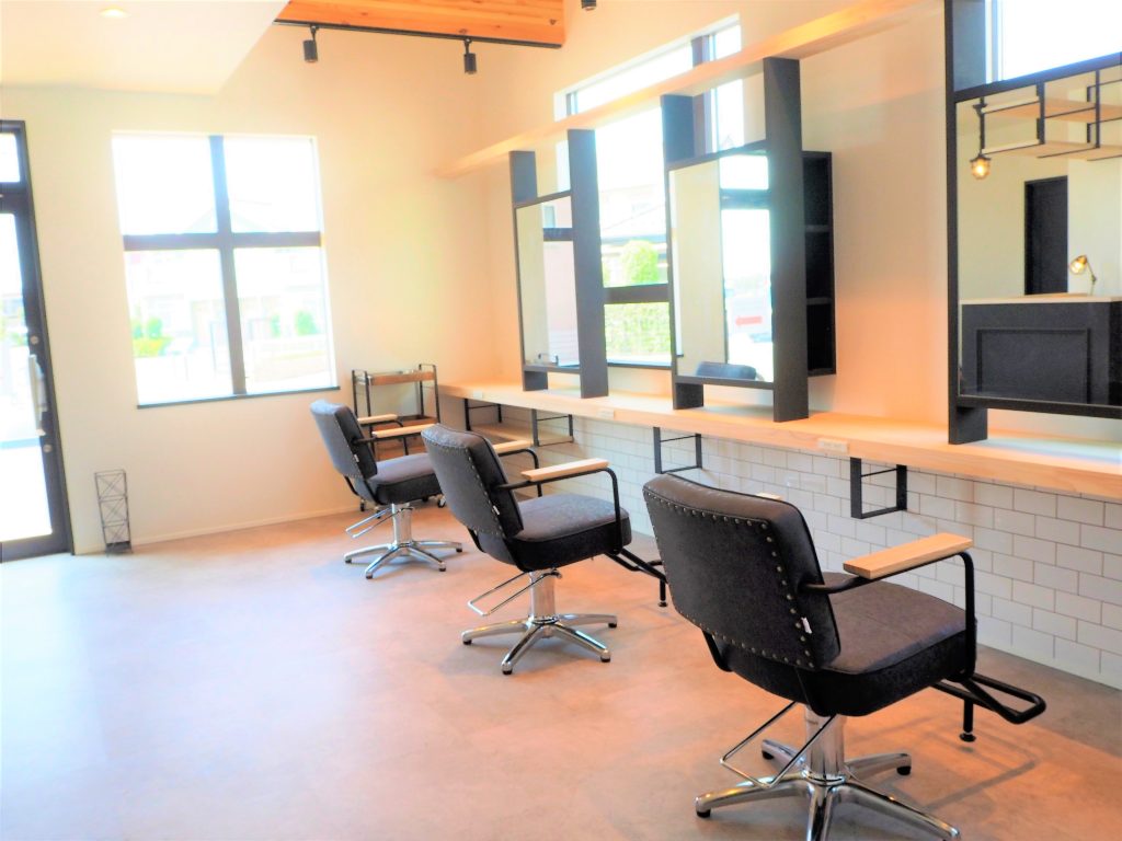 example施工実例 aura hair salon 様[ 美容室 ] 店舗・店舗併用住宅 ーボックスハウス~ホワイトを添えて~ー 美しい曲線がお洒落な塗壁の外観吹き抜けに造られたオープンな畳のワークスペースのあるお家 DATA ■ 敷地面積:―■ 延床面積:49.68坪■ 施工地域:茨城県古河市■ 間取り(住居):3LDK <店舗> <住居>