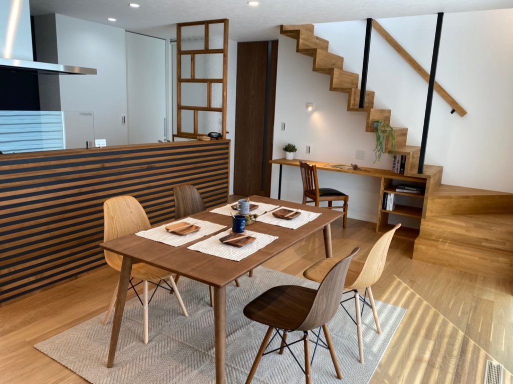 example施工実例 Bakery nik 様 モダン 店舗併用住宅 パン屋を営むご夫婦が建てたこだわりのオーダーメイドハウス 木製のチャネルサイディングとガルバリウムのスタイリッシュな外観とナチュラルテイストの内観でギャップが愉しい、第一種換気・エネファーム・床暖房を搭載した多機能住宅 DATA ■ 敷地面積:122.28坪■ 延床面積:44.96坪■ 施工地域:茨城県古河市■ 家族構成:― <店舗> <住居>