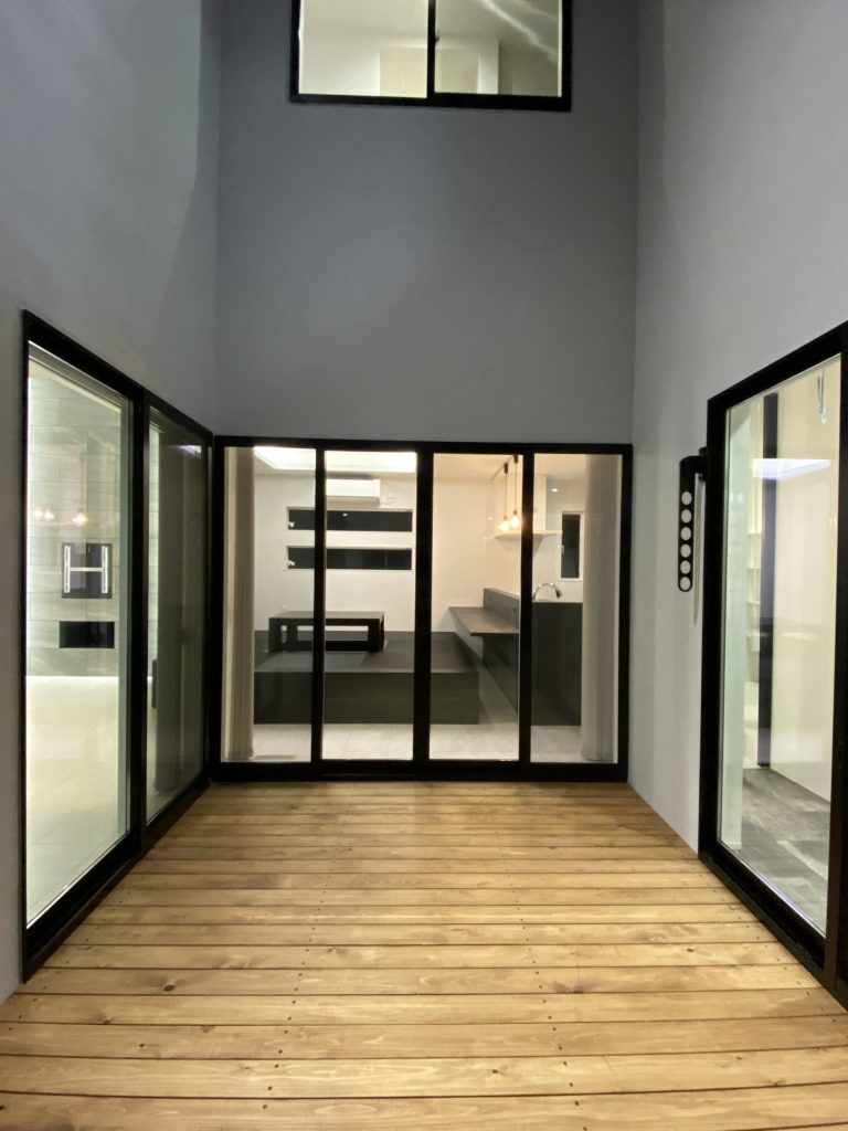 example施工実例 No Beauty, No Life. ホテルライク ー「美」を感じて暮らす家ー 内外観共にモノトーンカラーで統一された憧れのホテルライクなお家リビングに約4mの壁を施工したダイナミックなデザインが魅力 DATA ■ 敷地面積:―■ 延床面積:35.75坪■ 施工地域:茨城県古河市■ 家族構成:―