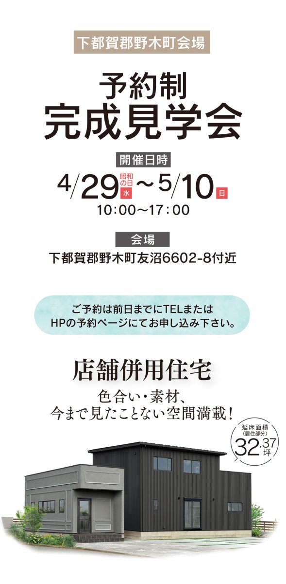 今回、下都賀郡野木町で見学会(内覧会・オープンハウス)を開催。