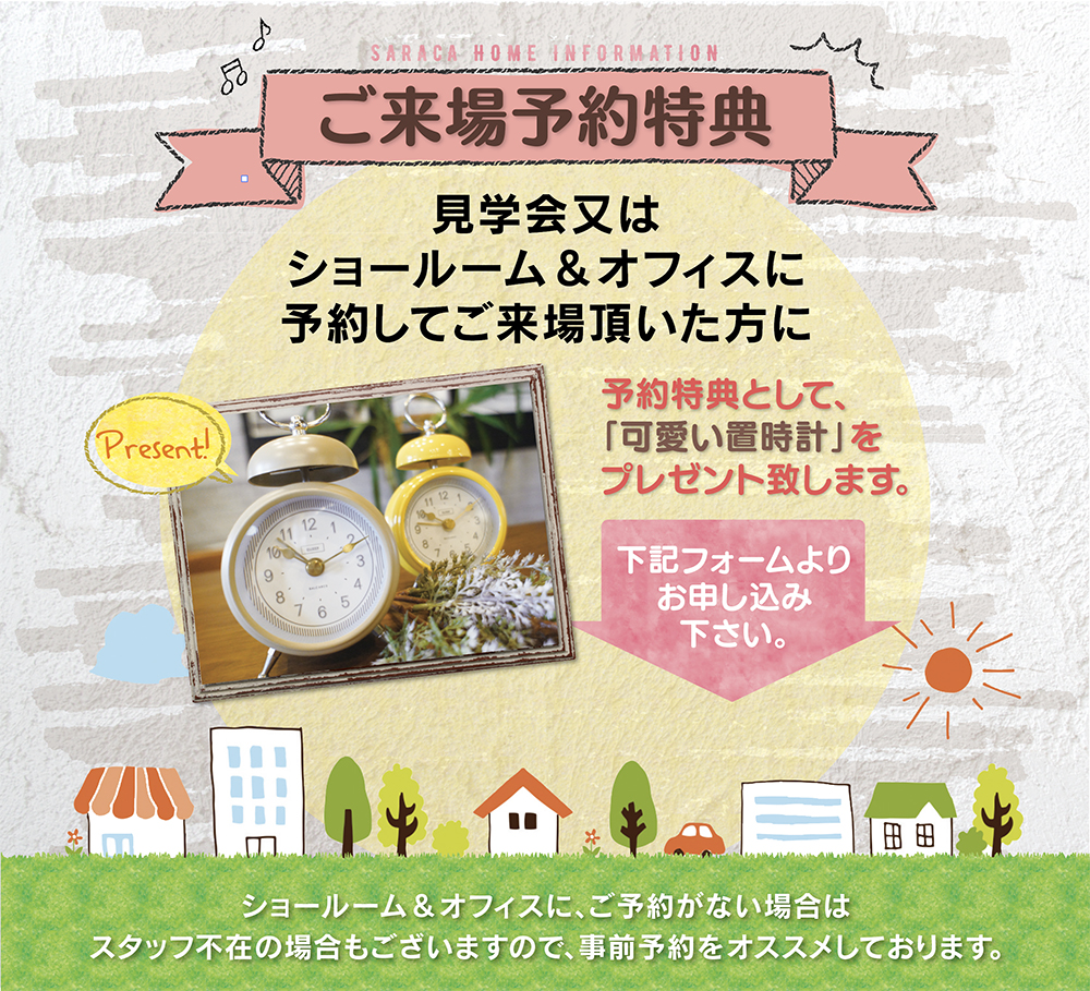 reservationご来場予約特典 ▼お気軽にお問合わせ下さい。 必須 いずれかにチェックして下さい。 見学会に参加したい 相談会・説明会に参加したい オフィスまたはショールームへ行きたい 会場名(複数選択可) 筑西市直井会場 古河市尾崎会場 猿島郡境町会場 筑西市門井会場 必須 ご希望日時 ※予約時間を変更する場合は、 お電話にてお知らせください。 第一希望 月 1月 2月 3月 4月 5月 6月 7月 8月 9月 10月 11月 12月 日 1日 2日 3日 4日 5日 6日 7日 8日 9日 10日 11日 12日 13日 14日 15日 16日 17日 18日 19日 20日 21日 22日 23日 24日 25日 26日 27日 28日 29日 30日 31日 ご希望の時間帯 9時~ 10時~ 11時~ 12時~ 13時~ 14時~ 15時~ 16時~ 17時~ 18時~ 第二希望 月 1月 2月 3月 4月 5月 6月 7月 8月 9月 10月 11月 12月 日 1日 2日 3日 4日 5日 6日 7日 8日 9日 10日 11日 12日 13日 14日 15日 16日 17日 18日 19日 20日 21日 22日 23日 24日 25日 26日 27日 28日 29日 30日 31日 ご希望の時間帯 9時~ 10時~ 11時~ 12時~ 13時~ 14時~ 15時~ 16時~ 17時~ 18時~ 必須 お名前 必須 電話番号 必須 メールアドレス 必須 ご住所 郵便番号 都道府県 【選択して下さい】 北海道 青森県 岩手県 秋田県 宮城県 山形県 福島県 栃木県 群馬県 茨城県 埼玉県 東京都 千葉県 神奈川県 山梨県 長野県 新潟県 富山県 石川県 福井県 静岡県 岐阜県 愛知県 三重県 滋賀県 京都府 大阪府 兵庫県 奈良県 和歌山県 徳島県 香川県 愛媛県 高知県 鳥取県 島根県 岡山県 広島県 山口県 福岡県 佐賀県 長崎県 大分県 熊本県 宮崎県 鹿児島県 沖縄県 市区町村 丁目番地 建物名 6歳以下のお子様はいらっしゃいますか? はい いいえ お問合せ・ご質問 サラサホームのことをどちらでお知りになりましたか?【複数回答可】 インターネット検索 ホームページ YouTube Instagram Facebook TikTok その他SNS ブログ・note チラシ 情報誌 住宅専門誌 住宅系ポータルサイト テレビ・ラジオ 知人・家族の紹介 工事現場 看板・のぼり 展示場・モデルハウス イベント・マルシェ 通りがかり その他 必須送信確認 プライバシーポリシーに同意頂いた方はチェックして下さい。 プライバシーポリシー 送信する リセット