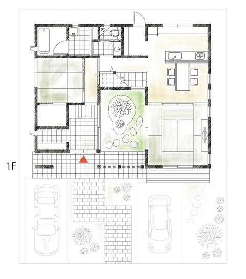 どこからでも眺められる中庭が、